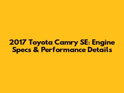 2017 Camry SE: Engine Specs & Performance Details