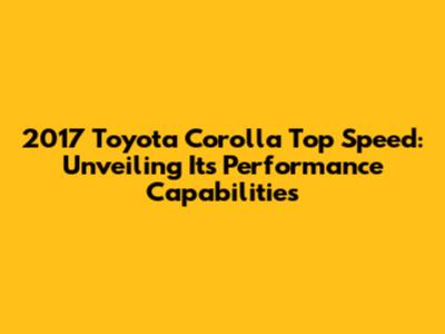 Decoding the 2017 Toyota Corolla's Speed Potential