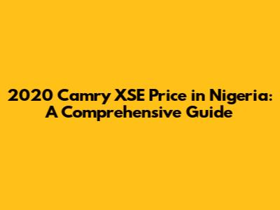 2020 Camry XSE Price In Nigeria: A Comprehensive Guide