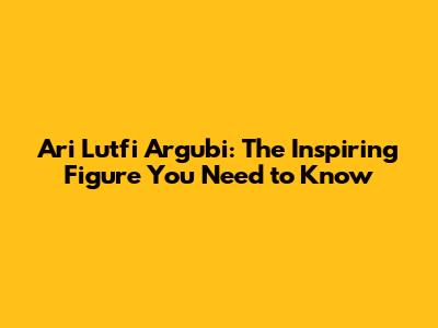 Ari Lutfi Argubi: The Inspiring Figure You Need To Know