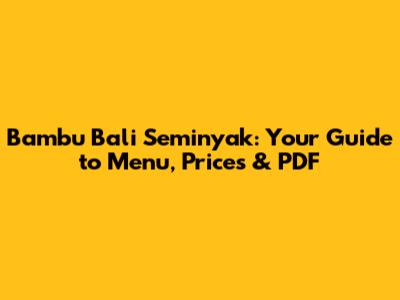 Is There a Bambu Bali Seminyak Menu PDF? Your Planning Tool