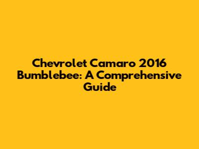 Chevrolet Camaro 2016 Bumblebee: A Comprehensive Guide