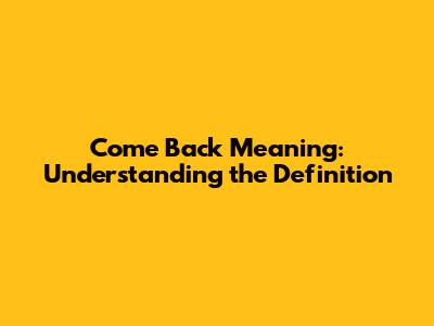 Come Back Meaning: Understanding The Definition