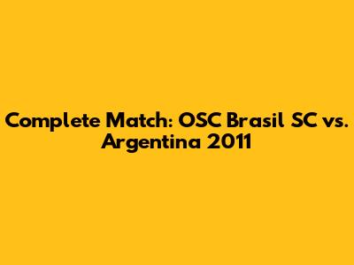 Complete Match: OSC Brasil SC Vs. Argentina 2011