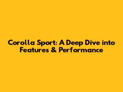 Corolla Sport: A Deep Dive Into Features & Performance