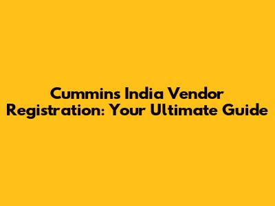 Cummins India Vendor Registration: Your Ultimate Guide
