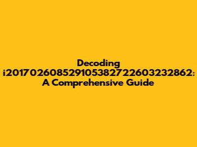 Decoding I201702608529105382722603232862: A Comprehensive Guide