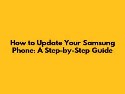 How to Update Your Samsung Phone: A Step-by-Step Guide