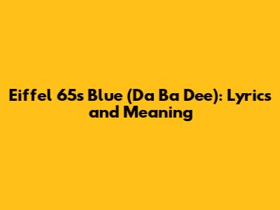 Hey guys! Ever wondered about that super catchy, kinda weird, but totally iconic song from the late 90s, "Blue (Da Ba Dee)" by Eiffel 65? Yeah, the one that goes "I'm blue da ba dee da ba daa"! Well, let's dive deep into the lyrics and meaning behind this unforgettable track. You know, sometimes the most simple-sounding songs have surprisingly interesting stories behind them.