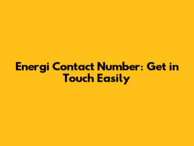 Energi Contact Number: Get In Touch Easily