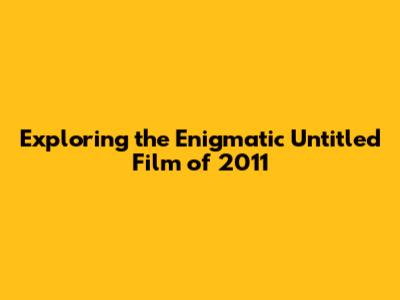 Exploring The Enigmatic 'Untitled' Film Of 2011