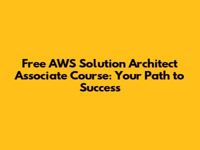 Free AWS Solution Architect Associate Course: Your Path To Success