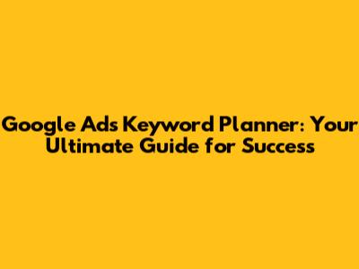Google Ads Keyword Planner: Your Guide To Success