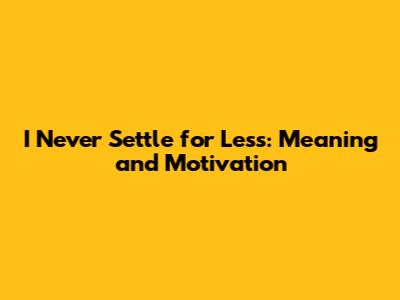 Have you ever heard someone say, "I never settle for less" and wondered what it truly means? Guys, it's more than just a catchy phrase; it's a powerful mindset that can drive you towards achieving your full potential. Understanding the "I never settle for less" meaning can be transformative, impacting everything from your career to your personal relationships. So, let's dive deep into unpacking this concept and see how you can apply it to your own life.