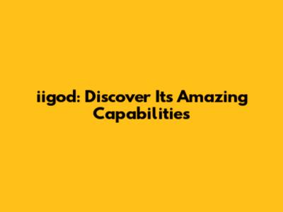 Iigod: Discover Its Amazing Capabilities