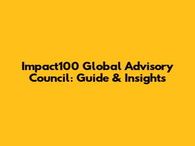 Impact100 Global Advisory Council: Guide & Insights
