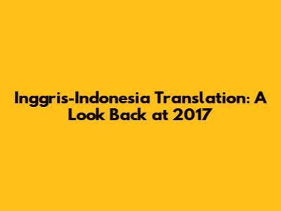 Inggris-Indonesia Translation: A Look Back At 2017