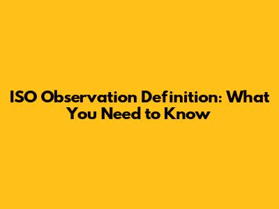 ISO Observation Definition: What You Need To Know