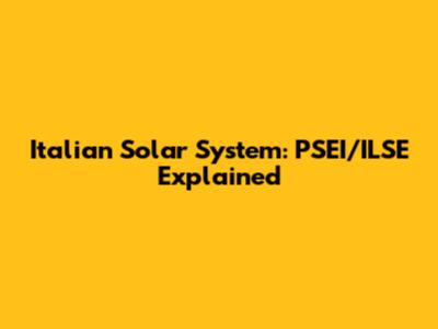 Italian Solar System: PSEI/ILSE Explained