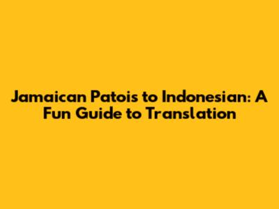 Jamaican Patois To Indonesian: A Fun Guide To Translation
