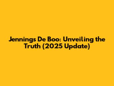 Jennings De Boo: Unveiling the Truth (2025 Update)