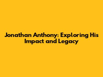 Jonathan Anthony: Exploring His Impact And Legacy