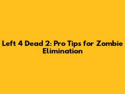 Left 4 Dead 2: Pro Tips For Zombie Elimination