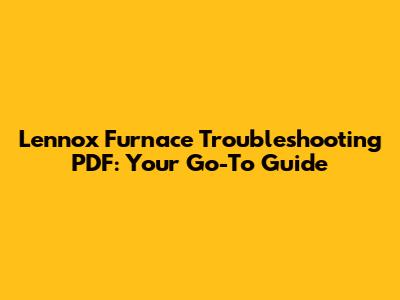Getting Started with Your Lennox Furnace Troubleshooting PDF