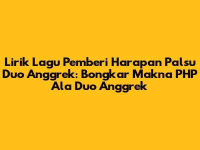 Guys, siapa sih di sini yang nggak kenal sama Duo Anggrek? Duo dangdut yang satu ini emang selalu sukses bikin kita bergoyang dan nyanyi bareng. Salah satu lagu hits mereka yang paling nempel di telinga dan sering jadi curhatan banyak orang adalah "Pemberi Harapan Palsu" atau yang sering disingkat PHP. Lagu ini tuh kayak anthem buat kalian yang pernah ngerasain dikasih harapan manis tapi ujungnya zonk. Yuk, kita bedah bareng-bareng lirik lagu Duo Anggrek "Pemberi Harapan Palsu" ini, biar makin paham sama makna di baliknya dan mungkin bisa jadi pelipur lara buat yang lagi patah hati.