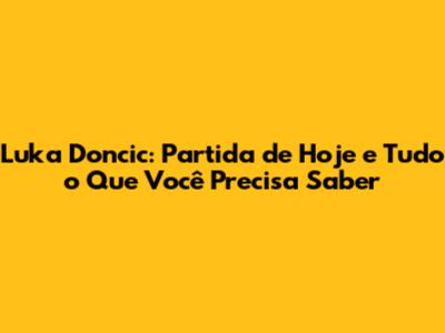 Luka Doncic: Partida De Hoje E Tudo O Que Você Precisa Saber
