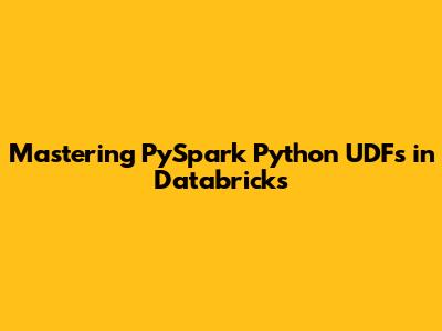 Mastering PySpark Python UDFs In Databricks