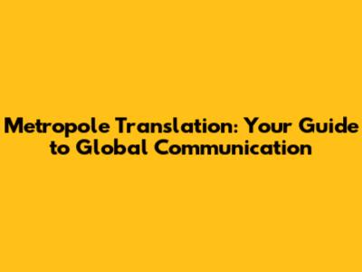 Metropole Translation: Your Guide To Global Communication