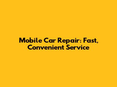 Mobile Car Repair: Fast, Convenient Service