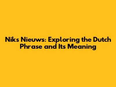 Understanding the Basics of "Niks Nieuws"