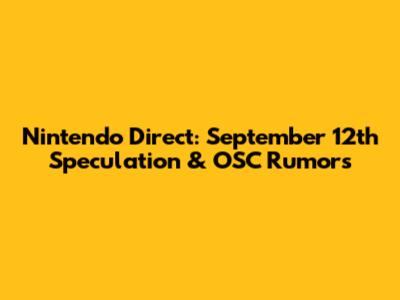 Nintendo Direct: September 12th Speculation & OSC Rumors
