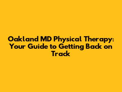 Oakland MD Physical Therapy: Your Guide To Getting Back On Track