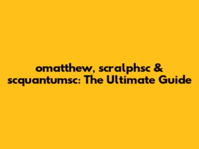 Omatthew, Scralphsc & Scquantumsc: The Ultimate Guide