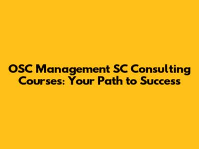 OSC Management SC Consulting Courses: Your Path To Success
