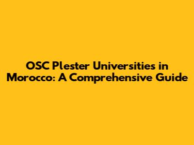 OSC Plester Universities In Morocco: A Comprehensive Guide