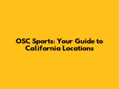 OSC Sports: Your Guide To California Locations