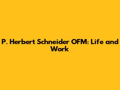 P. Herbert Schneider OFM: Life And Work