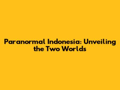 Paranormal Indonesia: Unveiling The Two Worlds
