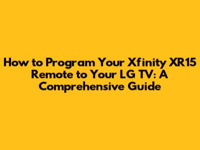 Program Xfinity XR15 Remote To LG TV: Easy Steps