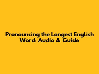 Pronouncing The Longest English Word: Audio & Guide