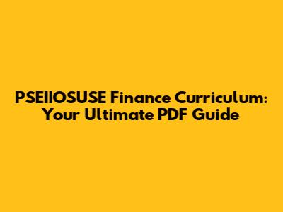 Why Use a PSEIIOSUSE Finance Curriculum PDF?