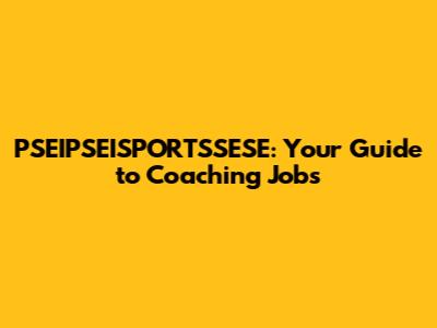 PSEIPSEISPORTSSESE: Your Guide To Coaching Jobs