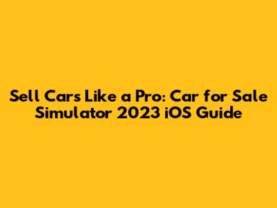 Sell Cars Like A Pro: Car For Sale Simulator 2023 IOS Guide