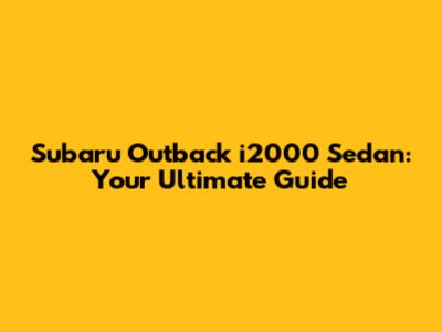 Subaru Outback I2000 Sedan: Your Ultimate Guide