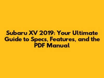Subaru XV 2019: Specs, Features & PDF Guide
