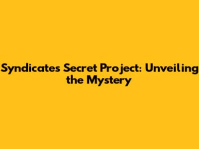 Syndicate's Secret Project: Unveiling The Mystery